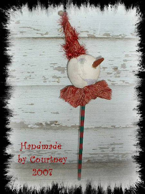 Any who, my kiddies have been working very hard on some handmades. My daughter Courtney has made this FuNkY SnOw GirL StIcK! They said they are making crafts to sell, to by Christmas presents!